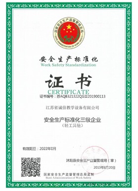 江蘇省誠信教學設(shè)備有限公司成立于2003年,是一家專注教學設(shè)備研究開發(fā)、生產(chǎn)制造、銷售服務(wù)為一體的綜合性教育、服務(wù)型企業(yè),是江蘇省教育設(shè)備行業(yè)協(xié)會會員單位、中國教育裝備行業(yè)協(xié)會會員單位,公司先后通過ISO9001國際質(zhì)量管理體系認證、IS14001國際環(huán)境管理體系認證、OHSAS18001職業(yè)健康安全管理體系認證。數(shù)十年的激勵前行鑄就企業(yè)優(yōu)質(zhì)的產(chǎn)品品質(zhì)和服務(wù)質(zhì)量。